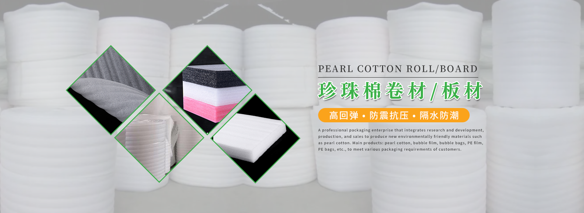 專業提供各種規格的珍珠棉包裝定制,主要生產珍珠棉、卷材、珍珠棉板材珍珠棉異型深加工,專注生產研發您身邊專業的包材服務商。